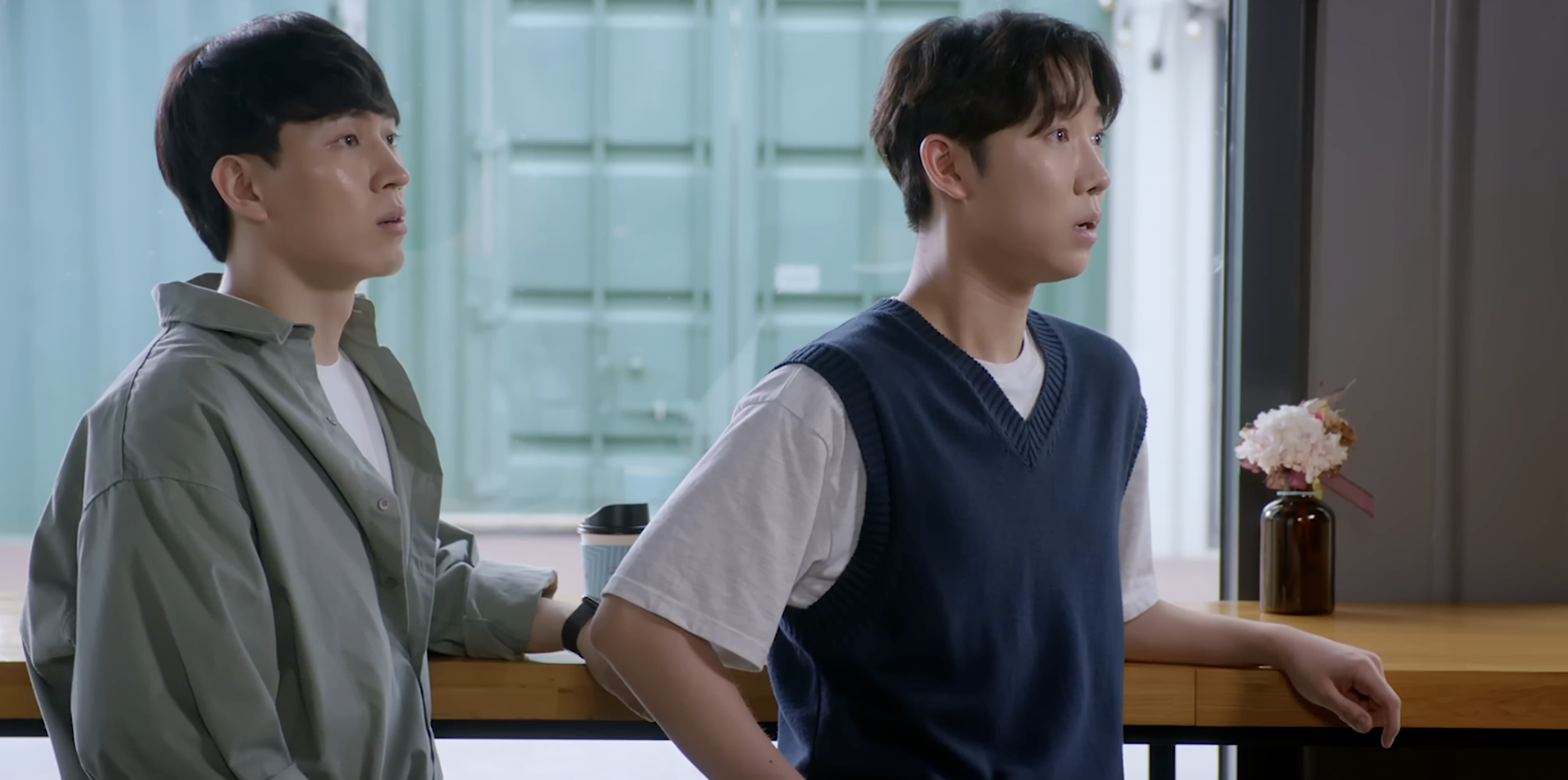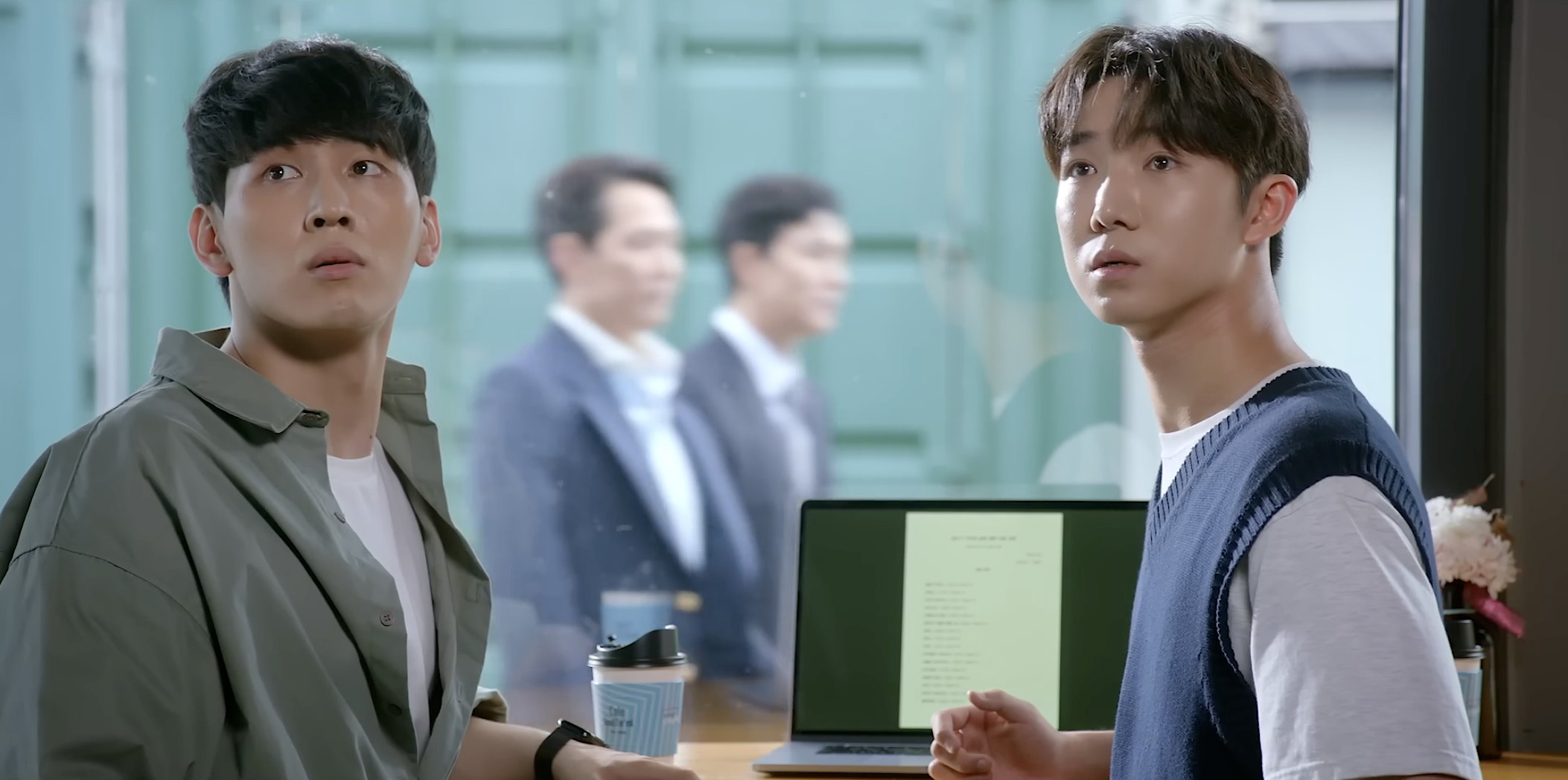 이때 카페 스피커를 통해 긴장감 있는 음악이 흘러나오고,